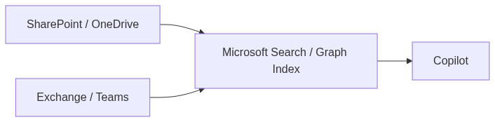 SharePoint, OneDrive, Teams, Exchange – indexed by Microsoft Search/Graph out of the box. - External content via Microsoft Graph connectors